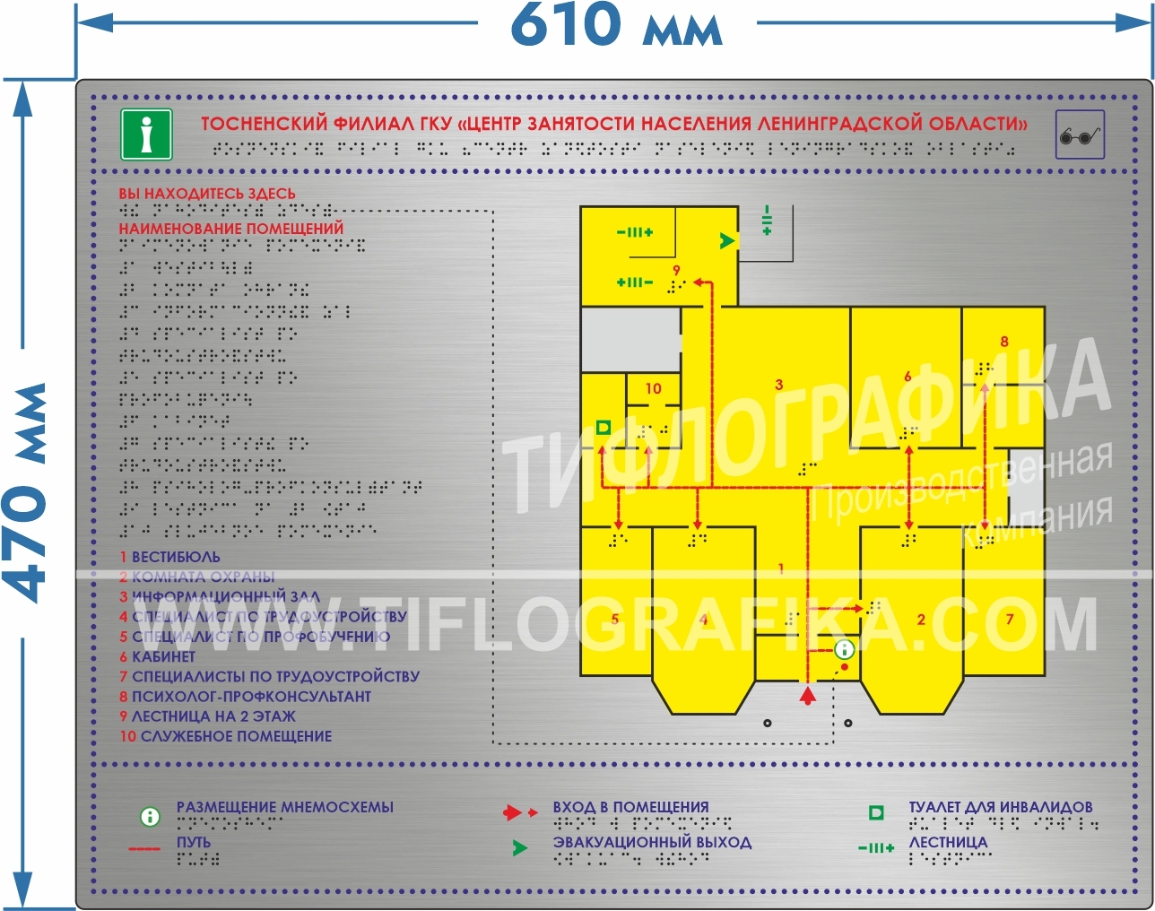 Уважаемые заказчики! Перед заказом Мнемосхемы размером 470х610 мм, просим прислать на нашу почту план БТИ с отметкой места установки и экспликацию (список) помещений для подтверждения / согласования данного размера изготовления! В противном случае, при оплате, мы не гарантируем, что присланная Вами информация после оплаты счета уместиться в данный размер!