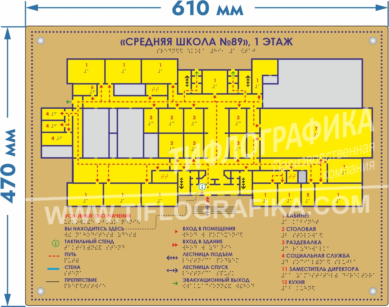 Тактильная мнемосхема ORG8 470х610х8 мм. Полноцветная