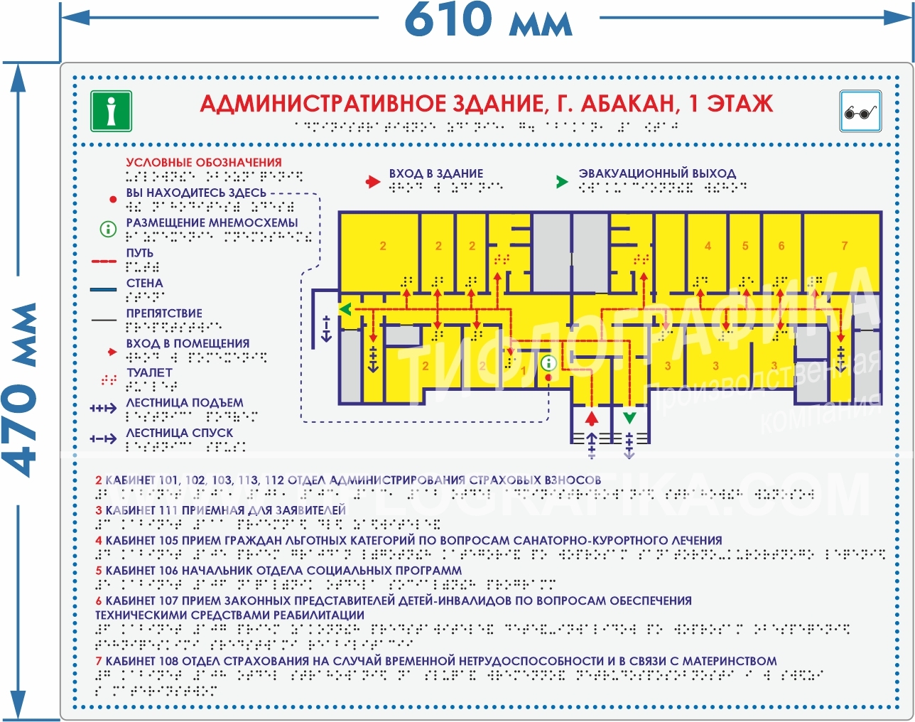 Тактильная мнемосхема ПВХ 470х610х3 мм.