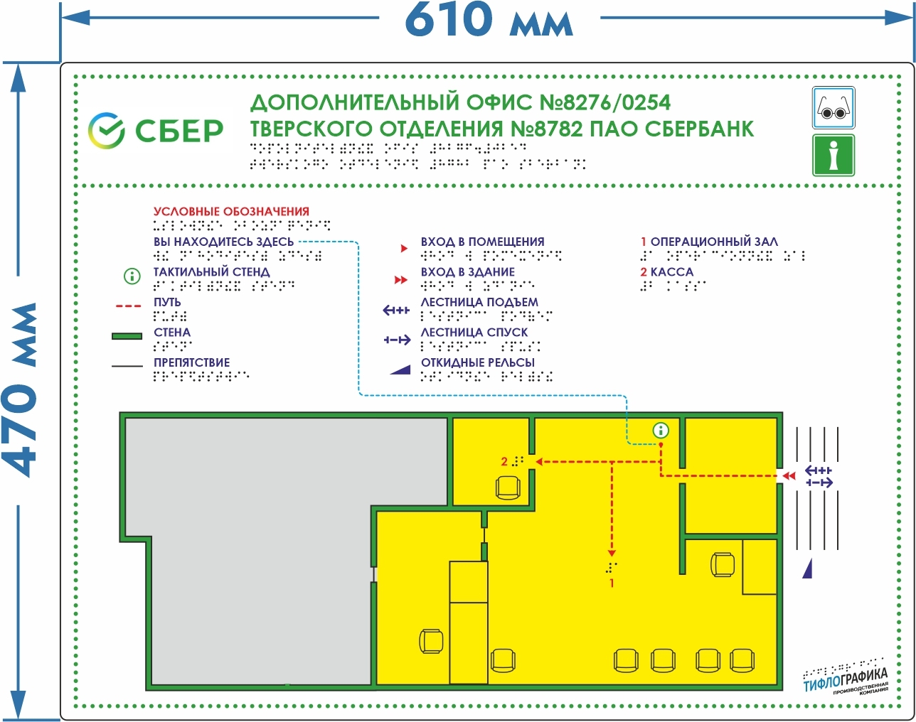 Тактильная мнемосхема ПВХ 470х610х5 мм. Стандартная